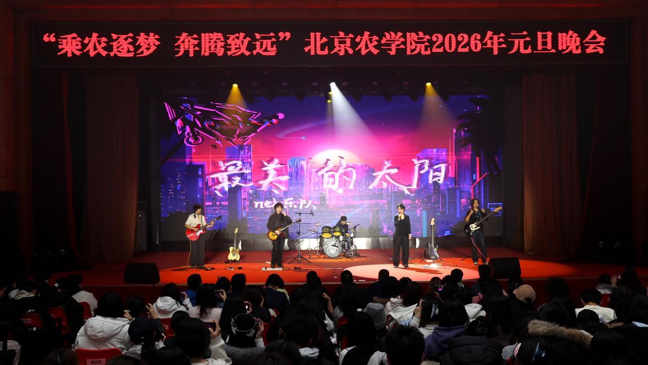 第四篇章以“启·长嬴”为题,展望充满希冀的2026年。原创情景剧《这条在乎,这条也在乎》以温馨的剧情,诠释了生命的温度与“在乎”的力量;舞蹈《GEE》活力满满,点燃全场热情;NEB吉他社乐队带来《天外来物》《最美的太阳》两首歌曲,唱响了北农学子追逐梦想、永不言弃的青春宣言。