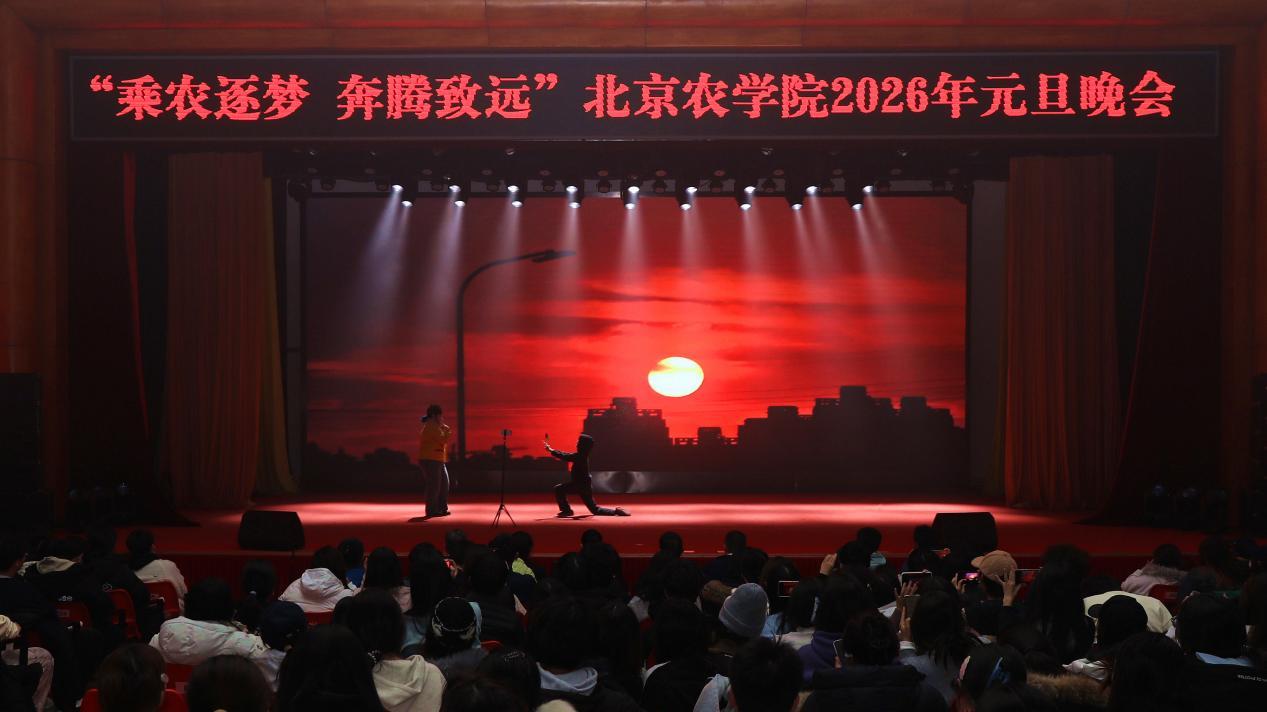 12月30日晚,学校举办“乘农逐梦 奔腾致远”2026年元旦晚会。学校领导与师生代表欢聚一堂,共迎新年。