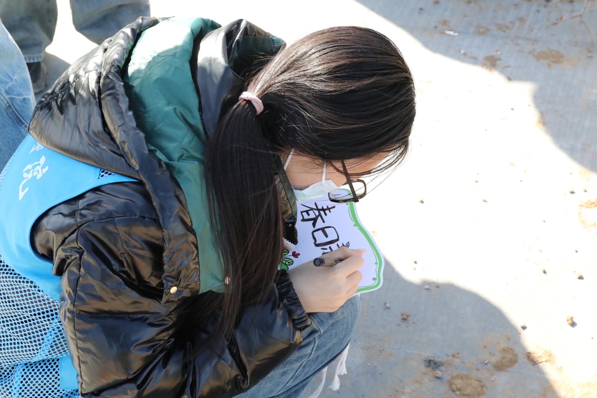 2024级生物育种技术1班的尹智烨同学表示:“作为农科学子,我们不仅是在种树,更是在实践中检验课堂所学的专业知识。”种植完成后,大家在每棵小树旁插上了亲手制作的树牌,纷纷写下“绿水青山就是金山银山”“愿此树常青,共绘校园新绿”等寄语。“今天种下的不仅是树苗,更是我对未来的承诺。待到苹果成熟的时节,我的支农扶农梦想也一定会开花结果。”一名同学指着刚挂上的树牌说道。