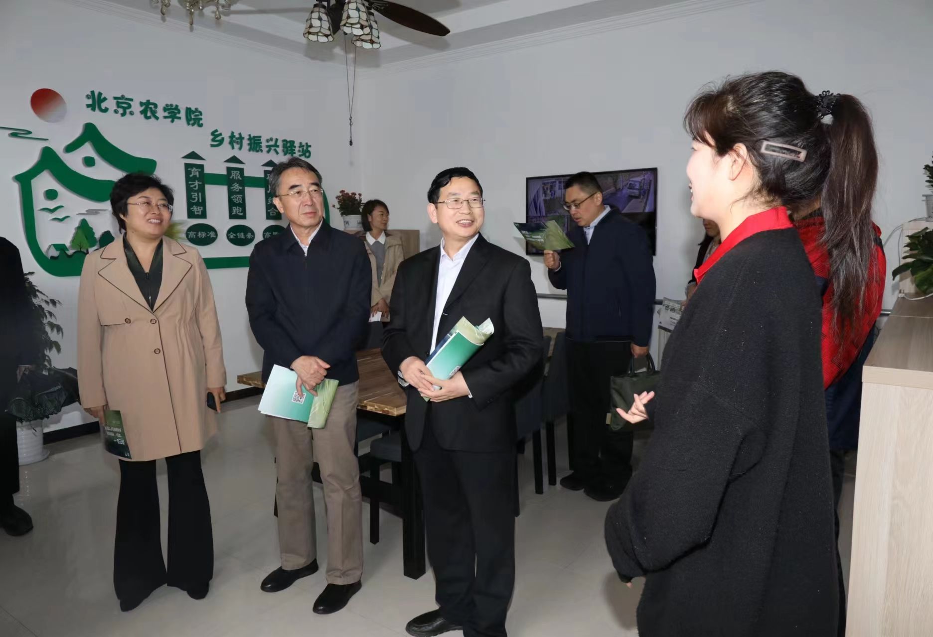 校领导一行实地了解学校师生参与昌平区兴寿镇辛庄村村庄规划与村容村貌提升情况,深入密云区溪翁庄镇金叵罗村,调研村庄特色产业发展与新业态打造情况。校领导看望入驻金叵罗村乡村振兴驿站的学校师生,勉励大家充分发挥学科专业优势,精准对接“三农”一线需求,在火热的实践中厚植爱农情怀,练就兴农本领,在乡村振兴的大舞台上建功立业。