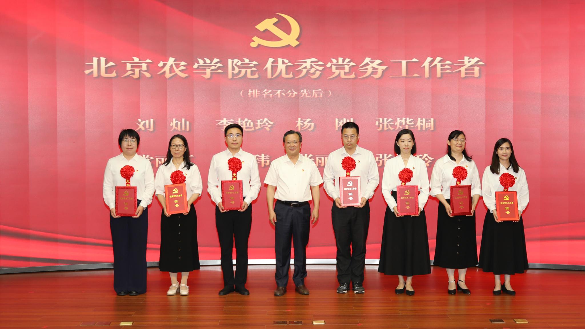校领导为入选全国高校“双带头人”教师党支部书记“强国行”专项行动团队党支部书记、北京市“六好”离退休干部示范党支部、北京市离退休干部先进个人、2024年北京高校红色“1+1”示范活动获奖支部、学校“两优一先”获奖集体和个人颁奖。