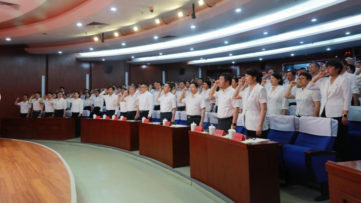 在全校上下深入学习贯彻党的二十大和二十届二中、三中全会精神,深入贯彻全国和全市教育大会精神、全国高校党建工作会议精神,扎实推进深入贯彻中央八项规定精神学习教育之际,7月1日上午,学校召开庆祝中国共产党成立104周年暨“两优一先”表彰大会。党委书记赵锋总结学校高质量党建引领高质量发展取得的成效,对进一步发挥党建引领作用、全面加强党建和思想政治工作进行再部署,对学习教育工作进行再推进并为广大党员干部讲授专题党课。全体校领导出席大会。大会由党委副书记仲丛生主持。