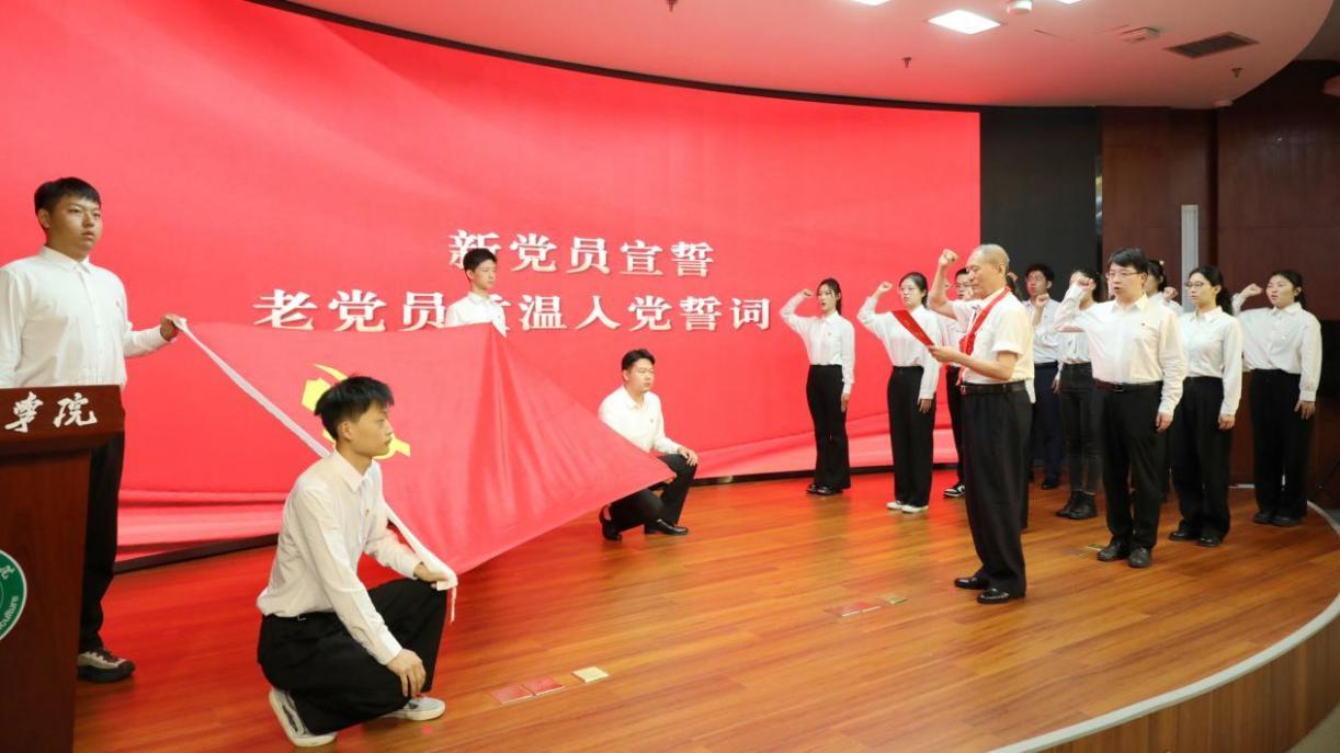 夏奎武带领新党员入党宣誓、老党员重温入党誓词。