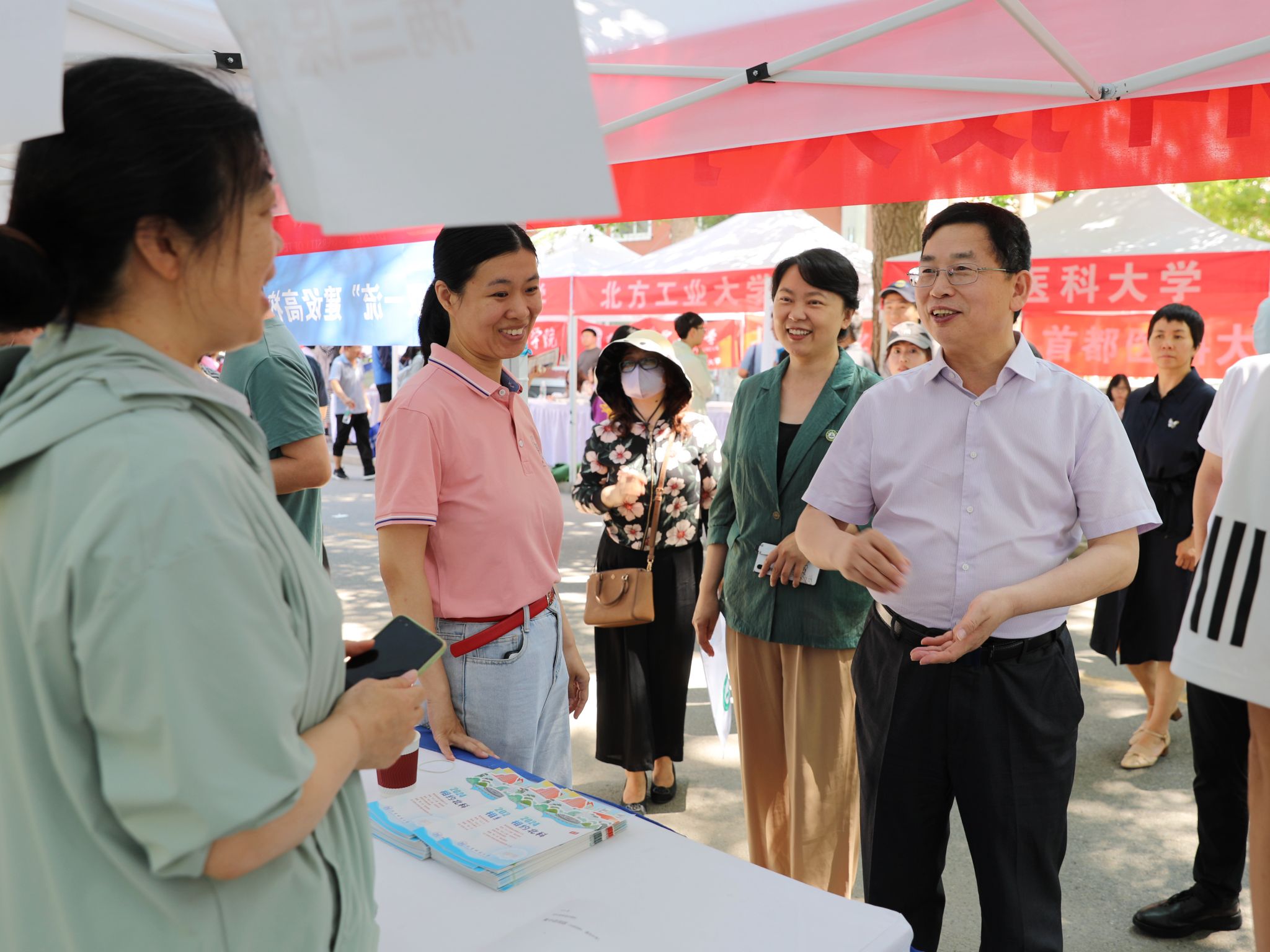 上午9时,学校党委副书记、院长段留生,党委常委、副院长武艳来到活动现场,对参加高招咨询的兄弟高校领导和工作人员表示欢迎,慰问参与高招咨询的各职能部门和二级学院工作人员,与前来咨询的考生及家长深入交流,热情欢迎同学们报考beat365在线唯一官网,鼓励同学们为服务新时代首都发展和全面推进乡村振兴贡献青春力量。