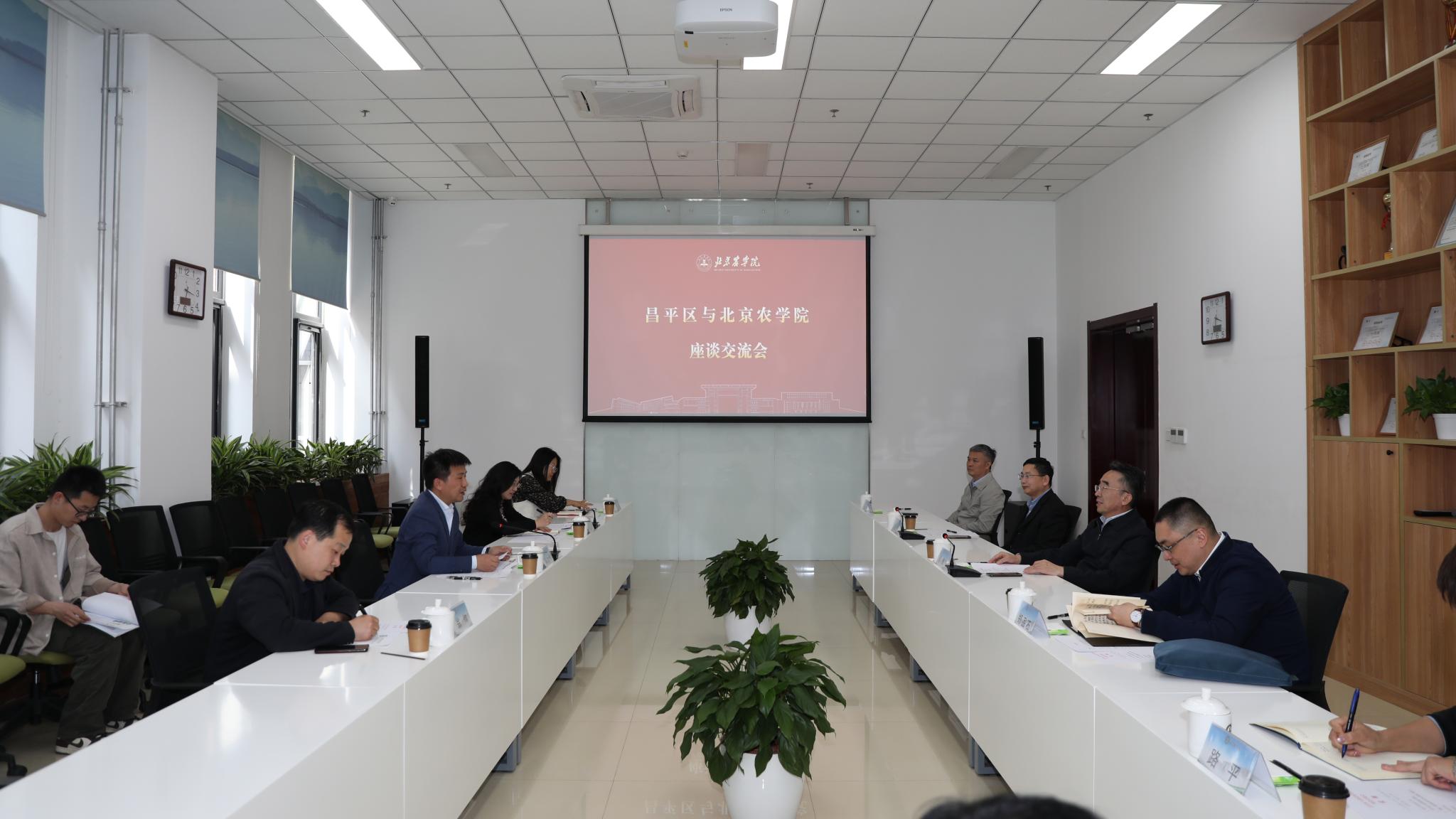 段留生介绍了学校学科建设、人才培养及服务乡村振兴成效。他指出,学校自与昌平区签署合作协议以来,依托教授工作站、乡村振兴驿站等平台推动多项科技成果在昌平区落地转化,为乡村振兴提供全链条技术支撑。学校将不断拓宽合作领域,积极融入“两谷一园”建设,借助“昌聚工程”人才项目等利好政策,推动产教、科教深度融合,助力校地谱写合作共赢新篇章,共同为服务新时代首都发展作出新的更大贡献。