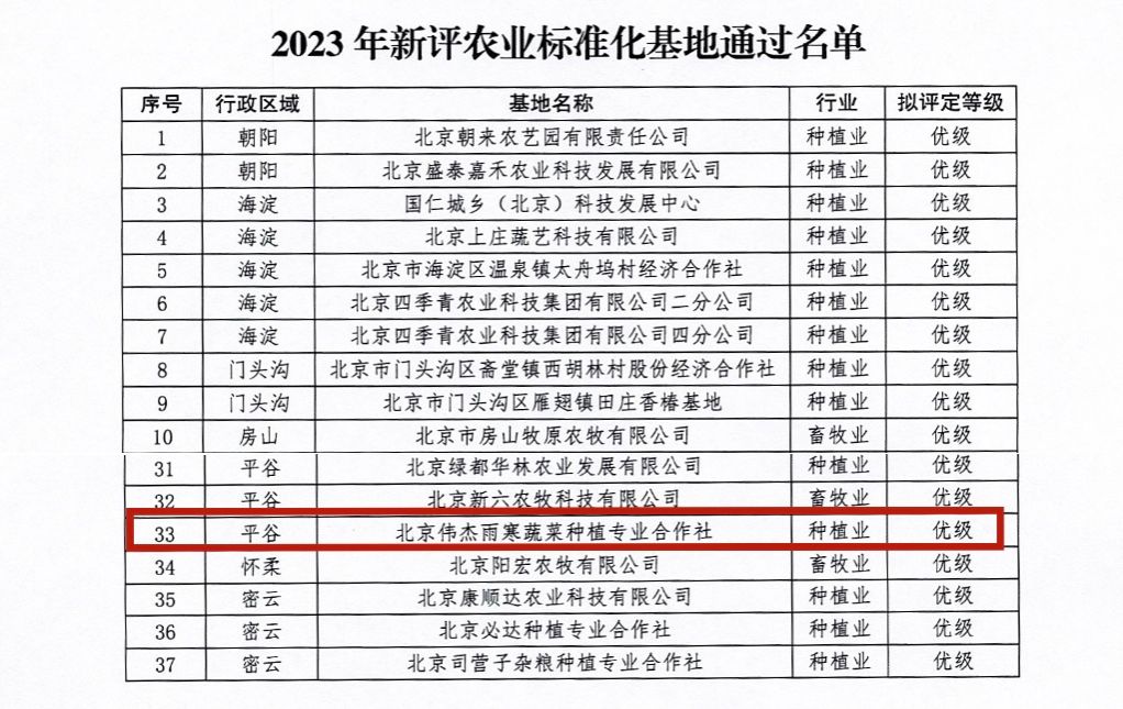 近日,北京市农业农村局公布了“2023年北京市优级农业标准化基地”评定结果,beat365植物科学技术学院孙路路副教授指导的北京伟杰雨寒蔬菜种植专业合作社获评“2023年北京市优级农业标准化基地”。