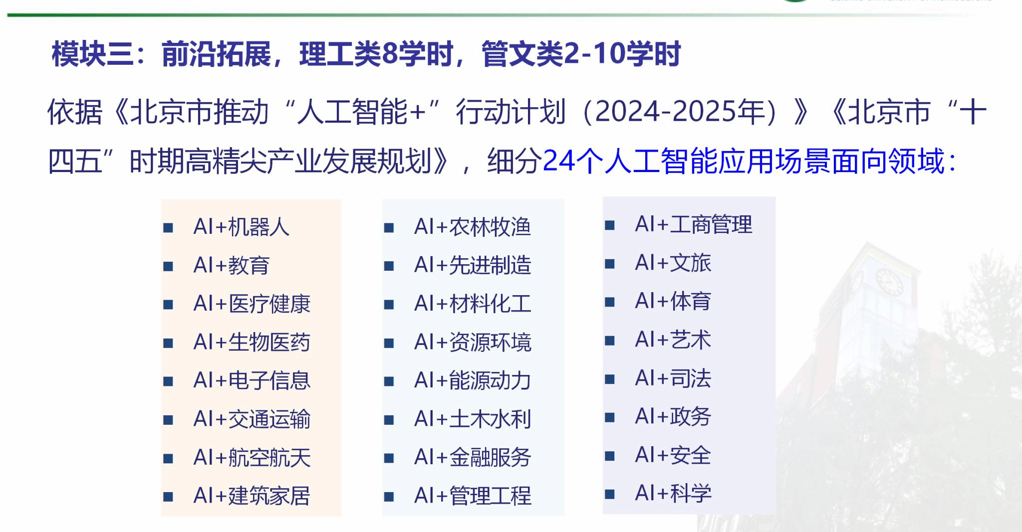 人工智能通识课教师团队表示,将深入学习贯彻党的二十届三中全会和全国全市教育大会精神,牢记为党育人、为国育才初心使命,全面提高学生人工智能专业能力和综合素养,促进人工智能发展和与其他学科专业交叉融合,为培养更多德智体美劳全面发展的知农爱农新型人才,更好地服务国家战略和首都经济社会发展贡献智慧和力量。