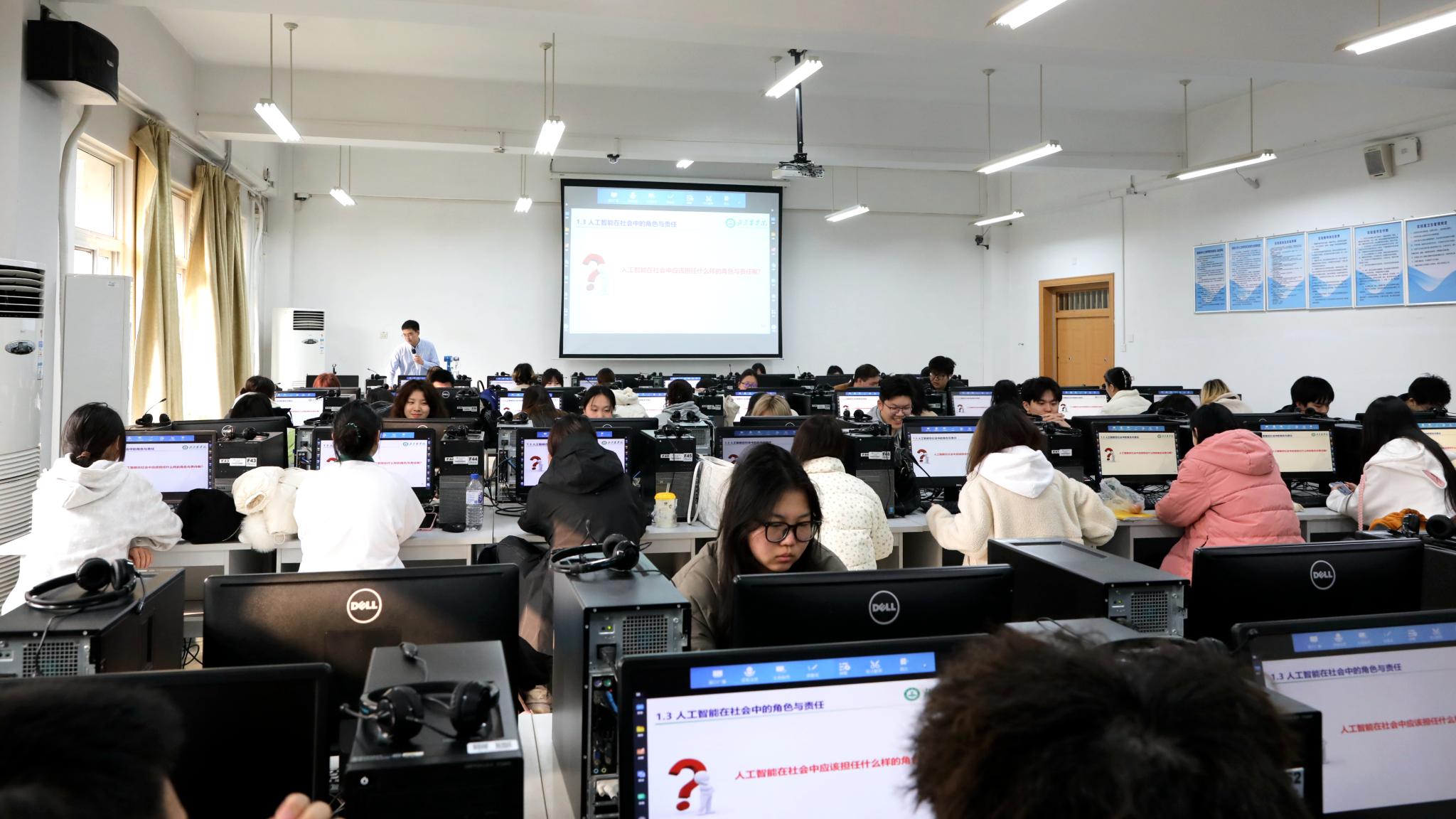 本学期,学校面向19个专业的947名学子全面开启人工智能通识教育新篇章。课程采用"双轨并行"教学模式,将同时开设理工类《人工智能导论A》和管文类《人工智能导论B》两门课程,对接不同学科背景。两门课程将共享优质教学资源,实现差异化培养目标,助力学生构建AI+X复合知识体系。