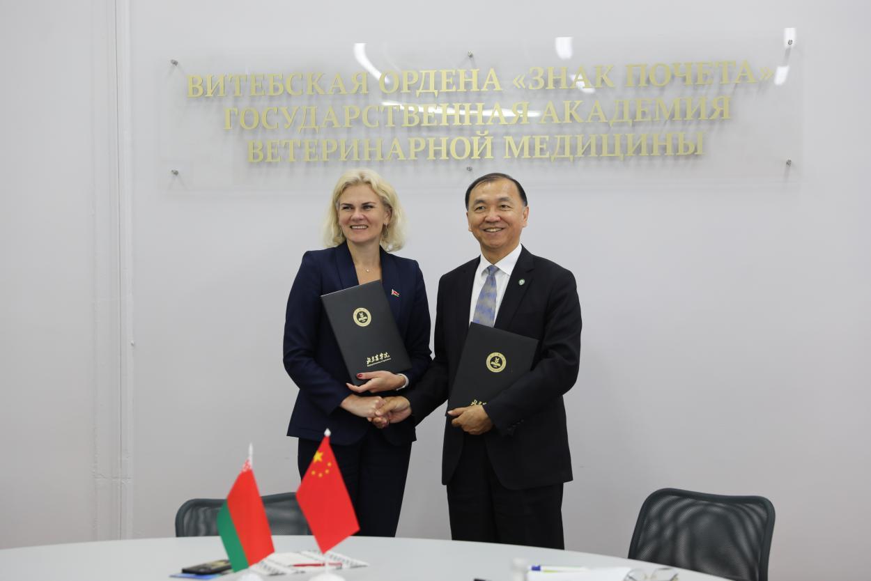 代表团实地走访了相关院校的智慧教室、重点实验室、博物馆、基地场站等场所,与圣彼得堡管理技术与经济大学、白俄罗斯维捷布斯克荣誉勋章国立兽医学院等院校签署了合作协议。仲丛生受邀联合主持“beat365在线唯一官网——莫斯科国立法律大学农业知识产权联合研究中心”揭牌仪式。