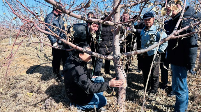 果树专家张卿从当地苹果产业发展存在的问题入手,分析了当地苹果产业发展优势和机遇,鼓励当地借助密云水库的生态优势发展优质果品,满足首都高端消费群体需求,提升苹果产业经济效益,促进果农增收致富。植保专家王进忠用生动形象的语言,深入浅出的讲授当地苹果产业主要虫害的发生规律,介绍了主要虫害的防治方式和注意事项。果树专家王志忠重点讲解了苹果省力化生产关键技术和水肥管理技术。他穿梭于果树间,认真观察并点评大家修剪过程中存在的问题,手把手指导果农进行苹果树修剪。“来!大家都动手试试。”在王志忠的鼓励下,技术骨干们跃跃欲试,纷纷拿起剪刀修剪起来。
