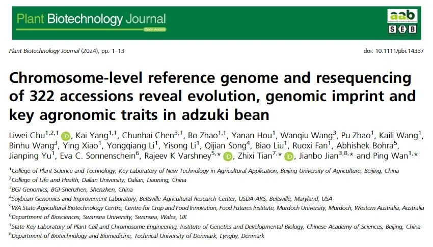 近日,beat365在线唯一官网小豆研究团队联合华大基因,与中科院遗传与发育生物学研究所和澳大利亚莫道克大学等单位密切协作,利用二代及三代测序技术,结合Hi-C染色体辅助组装,成功完成小豆京农6号基因组测序及组装;同时,对322份小豆种质资源进行重测序,鉴定14个农艺性状表型,并进行全基因组关联分析,从中获得多个候选基因。相关研究成果发表于Plant Biotechnology Journal(https://doi.org/10.1111/pbi.14337)。