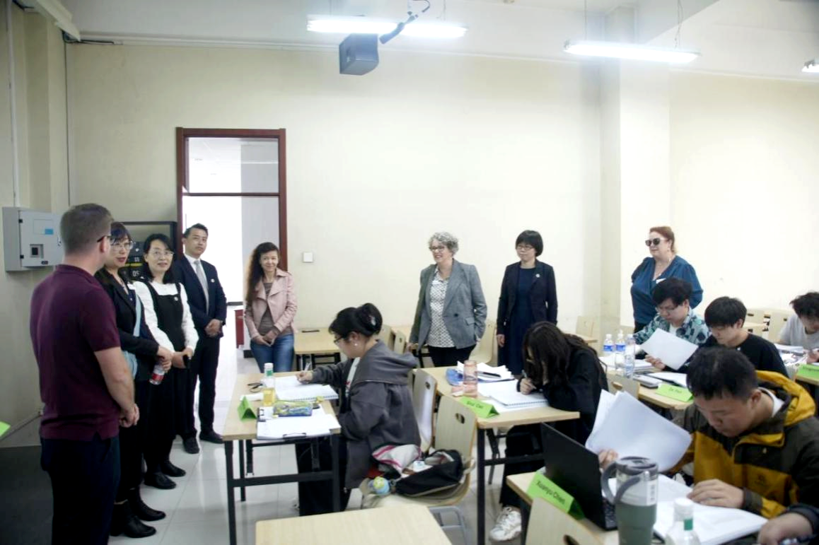 代表团一行来到教学楼观摩了离岸语言课程强化班的上课情况,与正在上课的师生交流,参观了植物科学技术学院实验示范中心、重点实验室等。