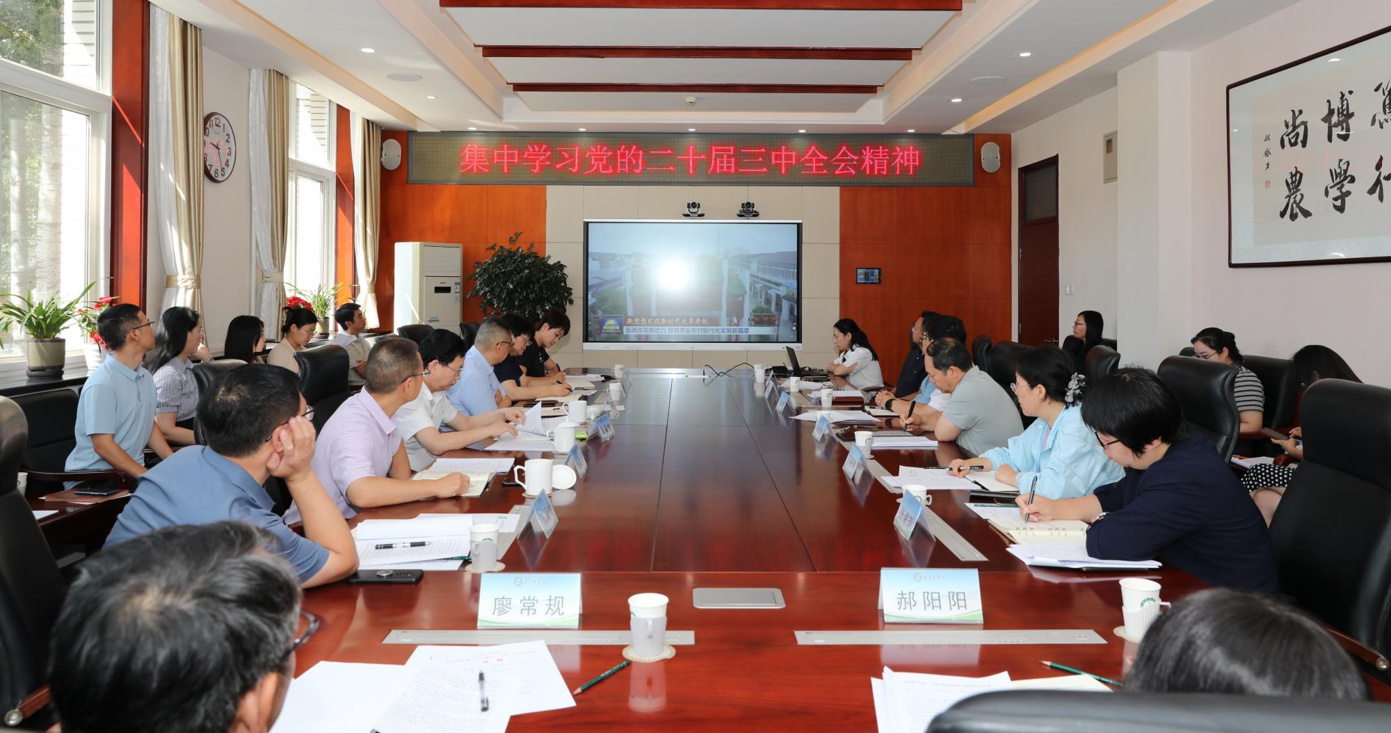 党委副书记、院长段留生表示,党的二十届三中全会紧紧围绕推进中国式现代化这个主题谋划和部署改革,书写了继续把改革推向前进的时代新篇,具有重大而深远的意义。全会通过的《决定》,是在新的历史起点上推进全面深化改革向广度和深度进军的又一次总动员、总部署,为中国长期发展指明方向,对于中国教育事业的发展具有重要意义。作为首都农林高校,我们深感责任重大、使命光荣。学校将在党委的坚强领导下,全面贯彻党的教育方针,深入学习贯彻落实全会精神,坚持把改革创新作为推动学校事业高质量发展的根本动力,积极响应乡村振兴和新时代首都发展对农林高等教育、科技、人才的迫切需求,扎实推进学校第四次党代会确定的“改革赋能工程”落地落实、取得实效。大力推进有组织的教学、科研和成果转化,着力提升知农爱农新型人才培养水平,科技赋能乡村振兴的水平,以及师资队伍整体水平,深度融入乡村振兴的主战场,推动学习成果转化为凝心聚力推动学校高质量发展的具体行动和实际成效,在进一步全面深化改革、推进中国式现代化进程中展现北农担当、贡献北农力量。
