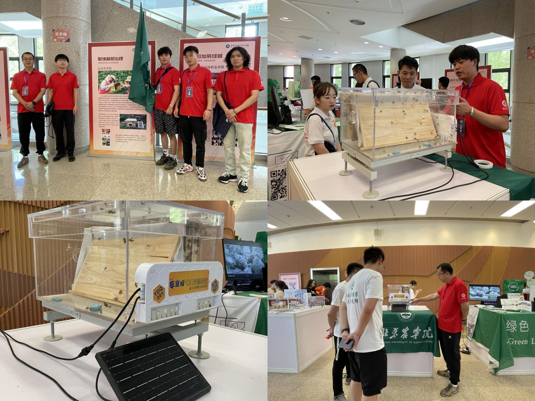 在活动现场的展览展示区,beat365计算机与信息工程学院的“E窝蜂”-蒲洼乡智慧蜂场建设实践团代表学校展示了设计开发的智能蜂箱,该蜂箱能够远程可视化数据处理,从而使蜂农无需长时间在蜂场工作,有效地解决了人工劳动力严重老龄化和传统养蜂模式费时费力等问题,同时还能降低劳动量、避免过多干扰蜜蜂活动、提高蜜蜂酿造效率,展示过程吸引了很多参会师生。