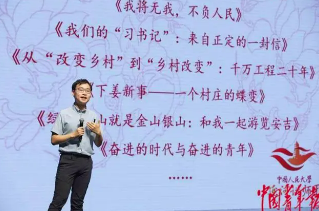 7月14日,2023年全国大学生“三下乡”“返家乡”社会实践启动周系列活动现场,来自清华大学的张文喆做主题为《始于实践 不止实践》的分享,讲述清华大学乡村振兴工作站的故事。中青报·中青网记者 陈剑/摄