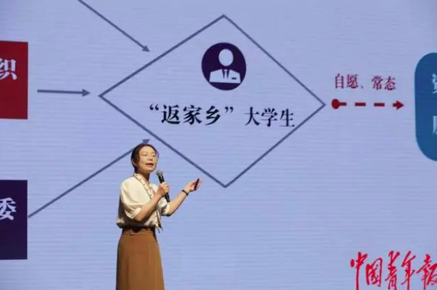 7月14日,2023年全国大学生“三下乡”“返家乡”社会实践启动周系列活动现场,共青团浙江绍兴越城区委书记魏珂赛做主题为《“让你遇见更好的我” “青春契约”撬动青年和城市双向发展》的分享。中青报·中青网记者 陈剑/摄