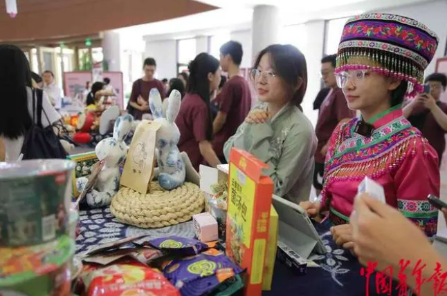 7月14日,2023年全国大学生“三下乡”“返家乡”社会实践启动周系列活动现场,来自北京联合大学的学生们在“公益电商助力乡村振兴”展台前准备进行直播展示。据介绍,活动专设首都新时代大学生社会实践成果交流展,通过实物实景展示党的十八大以来首都高校学生在理论宣讲、乡村振兴、科技创新、民族团结等领域开展社会实践的优秀成果,吸引众多师生驻足观看、观摩学习。中青报·中青网记者 陈剑/摄