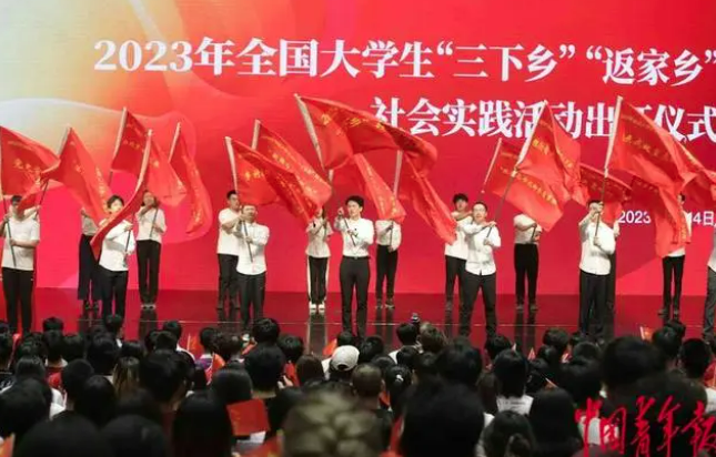7月14日,2023年全国大学生“三下乡”“返家乡”社会实践启动周系列活动现场,北京高校学生代表向全国大学生发出踊跃投身新时代火热社会实践的青春倡议。中青报·中青网记者 陈剑/摄