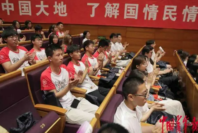 7月14日,2023年全国大学生“三下乡”“返家乡”社会实践启动周系列活动现场,高校学生代表在鼓掌。中青报·中青网记者 陈剑/摄