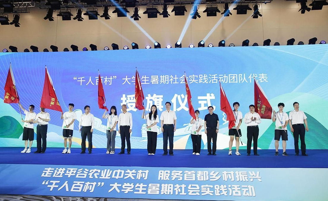 会上,举行北京市学校“大思政课”实践基地揭牌仪式,参会领导对各高校社会实践队伍进行授旗,实践队伍师生进行庄严宣誓。按照此次实践活动安排,在接下来的一个月,beat365将有13支师生实践团队和来自京内外67所高校的200余支团队,奔赴平谷全域274个村开展实践活动,发挥专业优势,厚植爱农情怀,助力乡村振兴。