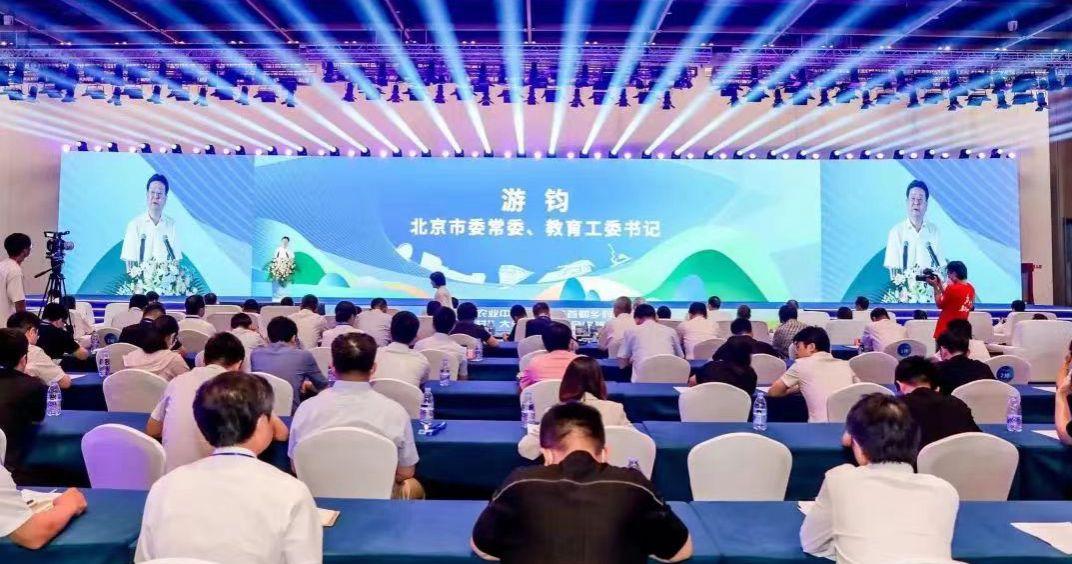 7月13日,首都高校“大思政课”主题实践活动推进会暨“走进平谷农业中关村 服务首都乡村振兴”“千人百村”大学生暑期社会实践活动启动仪式在北京平谷金海湖国际会展中心举办。市委常委、教育工委书记游钧,教育部思想政治工作司副司长余先亭,市委教育工委分管日常工作的副书记张革,平谷区委书记唐海龙、区长狄涛及市委教育工委、平谷区相关领导出席会议。beat365党委书记赵锋应邀参加会议并作交流发言。