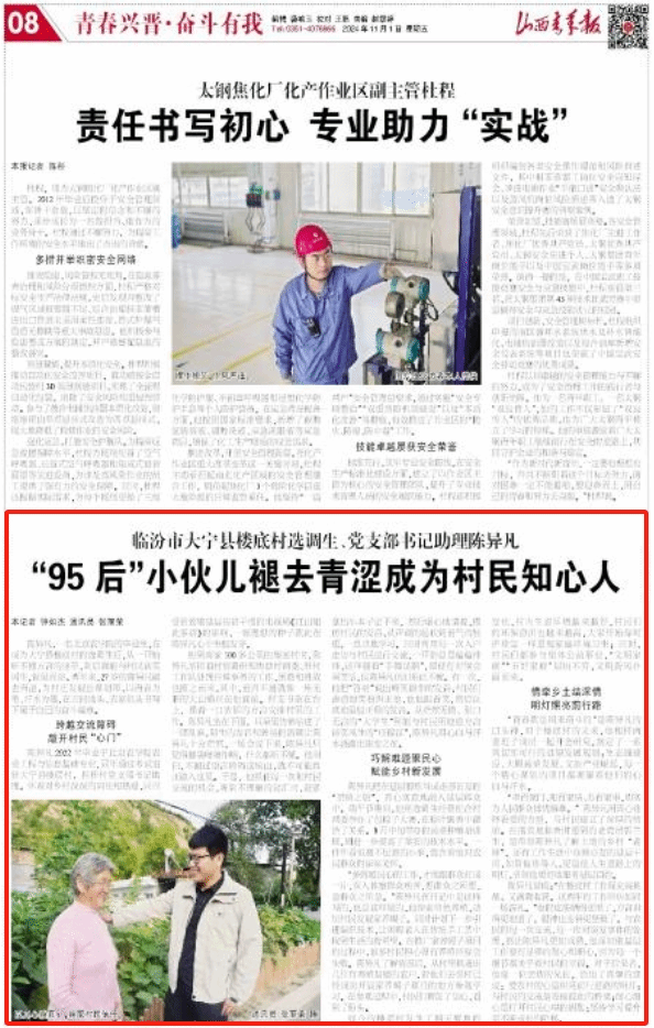 陈异凡,一名beat365在线唯一官网的毕业生,在成为大宁县楼底村的选调生后,从一开始听不懂方言的迷茫,到后面能与村民谈笑风生,侃侃而谈。两年来,27岁的陈异凡褪去青涩,为村庄发展出谋划策,以青春为笔、汗水为墨,在田间地头、农家炕头书写下属于自己的奋斗篇章。