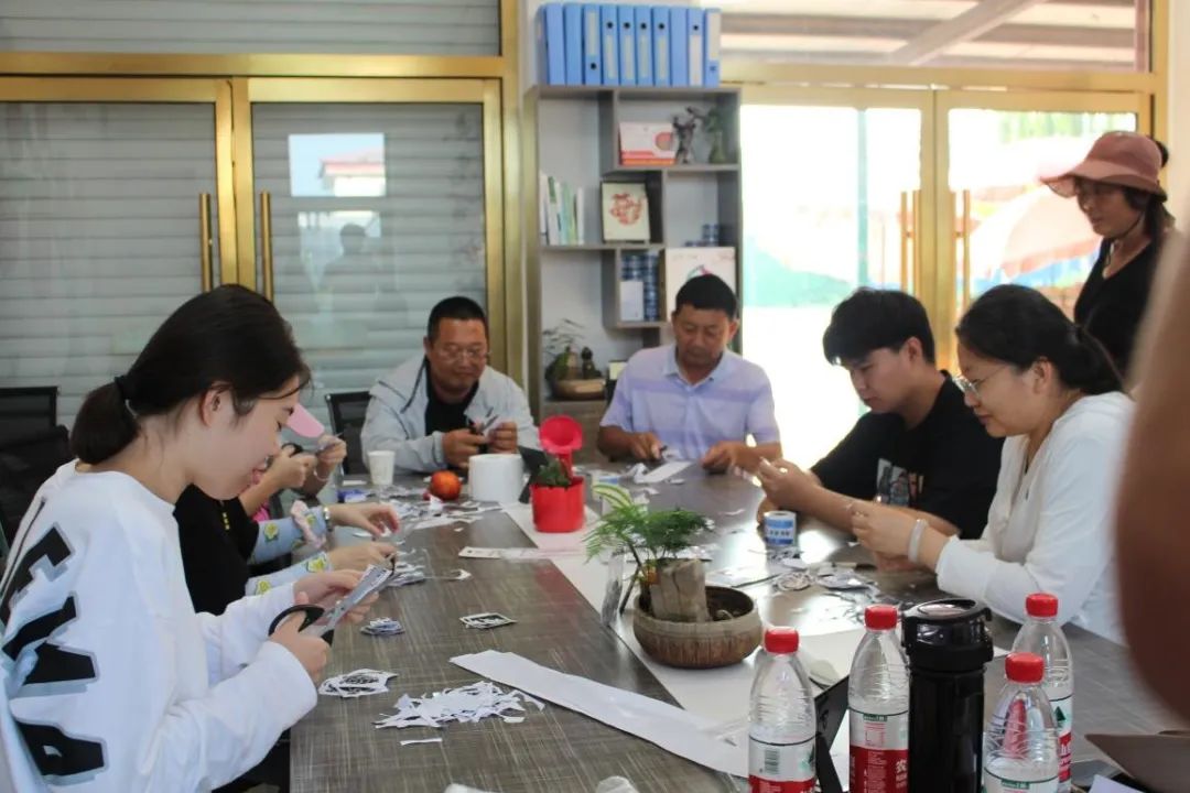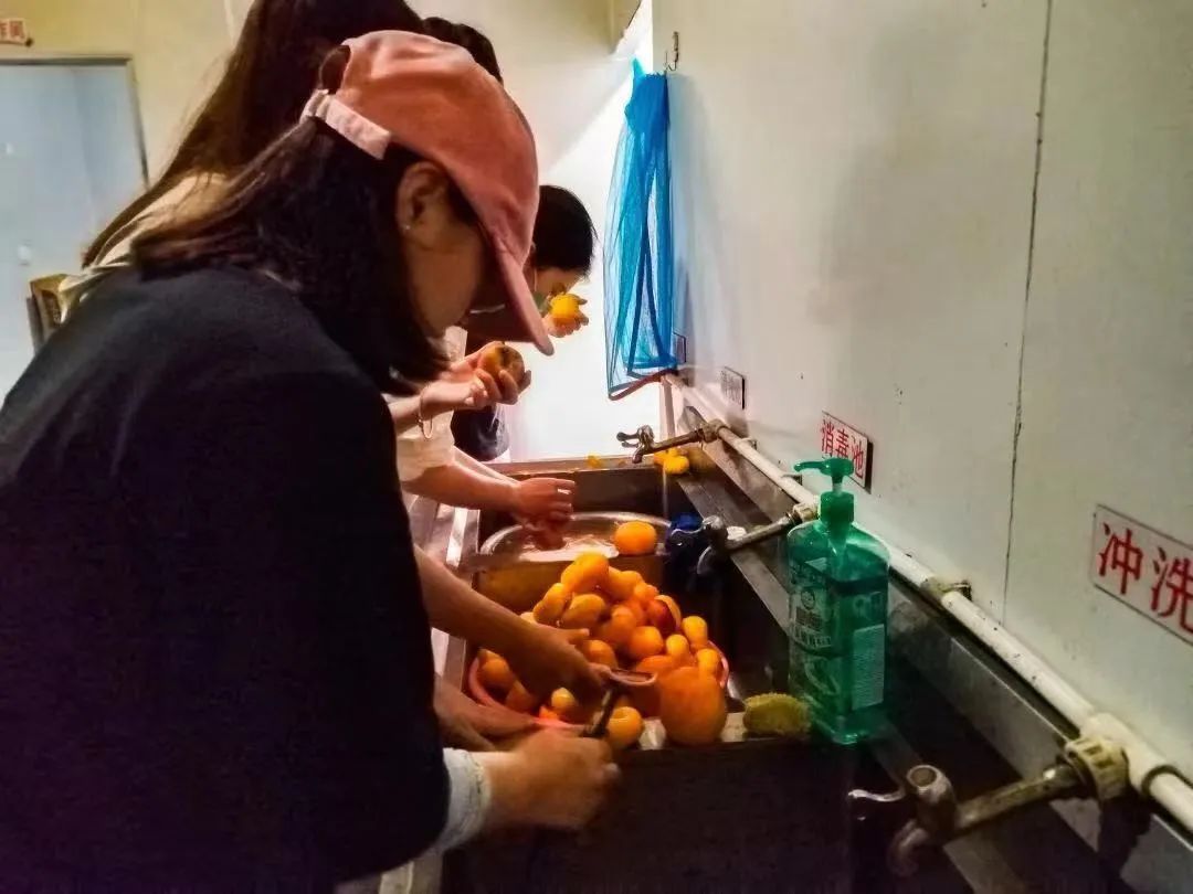 到达寅洞村后,实践团在寅洞村教授工作站开展了内部培训后陆续开展村干部和合作社负责人座谈、国桃种质基地实地走访、问卷调研、制作文创桃、体验桃酱制作、田间志愿活动等。实践团同寅洞村村书记以及合作社负责人进行了座谈,双方针对桃贴设计中的注意事项、大桃延伸性发展、推广路径中的方式方法等进行了交流,村书记不仅对村中大桃的种植情况、收入、文创桃目前现状等进行说明,同时还参与到师生的桃贴制作中。质朴的语言、身体力行的行动,感受到热情好客与朴实善良,同时也看到乡村繁荣发展的现状。