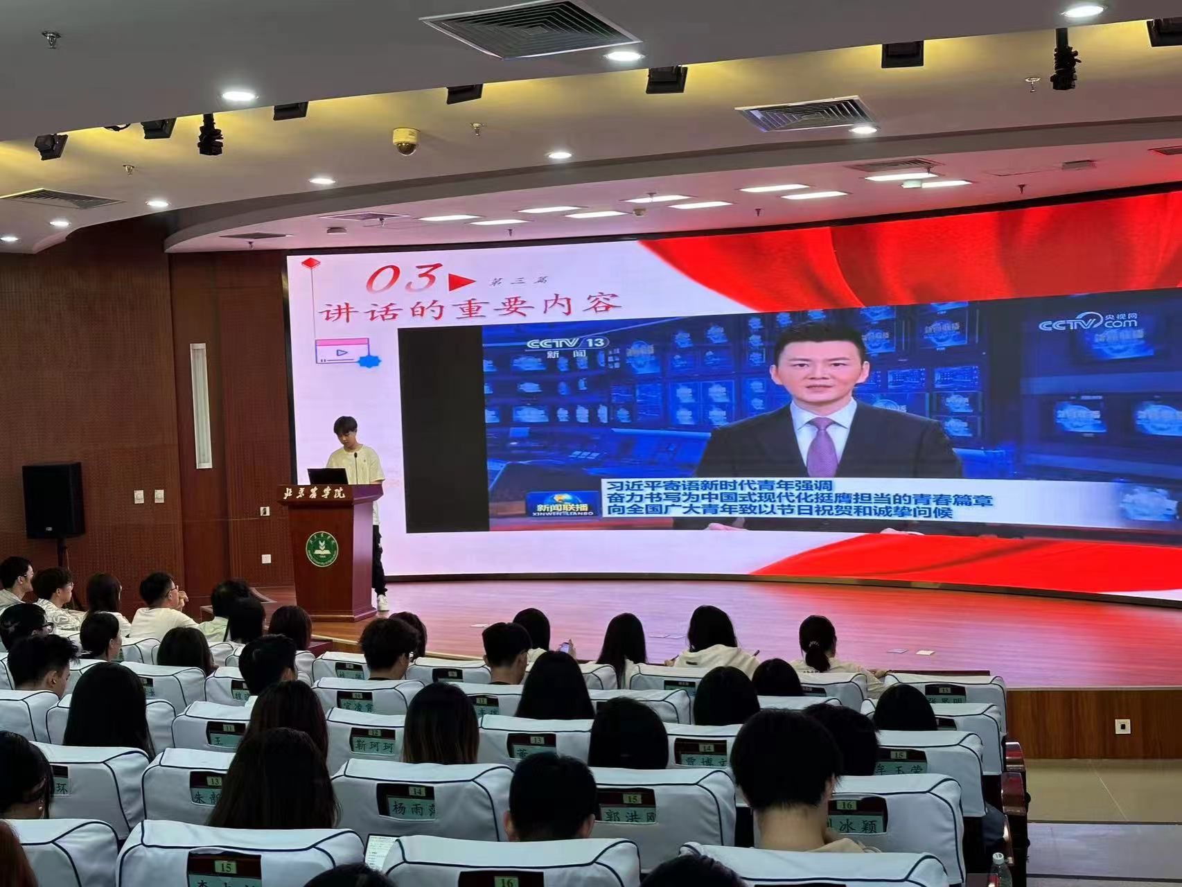 “广大青年要继承和发扬五四精神,坚定不移听党话、跟党走,争做有理想、敢担当、能吃苦、肯奋斗的新时代好青年,在推进强国建设、民族复兴伟业中展现青春作为、彰显青春风采、贡献青春力量,奋力书写为中国式现代化挺膺担当的青春篇章。”
