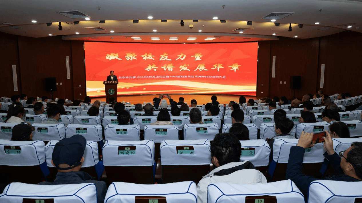 赵锋代表学校对各位校友表示热烈欢迎,对大家长期以来对母校改革发展的关心、支持和帮助表示衷心的感谢并致以崇高的敬意。他向各位校友介绍了学校近年来以高质量党建引领高质量发展、打造高素质专业化干部和教师队伍、大力培养知农爱农新型人才、以科技创新赋能乡村振兴取得的显著成效。他表示,新时代、新征程,学校将始终牢记“为党育人、为国育才”初心使命,落实立德树人根本任务,勇担强农兴农时代使命,奋力在服务新时代首都发展和全面推进乡村振兴的进程中想在前、干在前、走在前,以实际行动回答好“教育强国、北农何为”“农业强国、北农何为”这一重要时代课题。他强调,学校的改革发展、取得的成就成果,都凝结着广大校友的心血、智慧和汗水。学校将持续关注校友、支持校友、服务校友,用心用情用力做好校友工作,希望广大校友一如既往地关心和支持母校的建设和发展,助力母校早日建成国内一流国际知名都市农林特色高水平应用型大学!