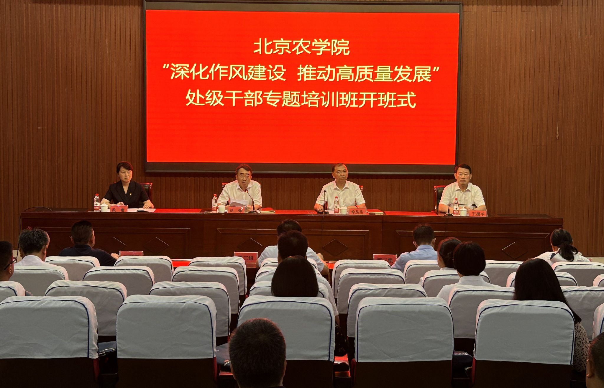为持续深入开展好主题教育,推动以学铸魂、以学增智、以学正风、以学促干,进一步提升干部党性修养、专业素养和管理水平,打造一支高素质专业化干部队伍,7月25日至28日,beat365“深化作风建设 推动高质量发展”处级干部专题培训班在张家口市万全区委党校举办。党委书记赵锋作开班动员,党委副书记仲丛生,党委常委、副院长武艳,张家口市万全区委副书记王拥平出席开班仪式,全体处级干部参加培训。