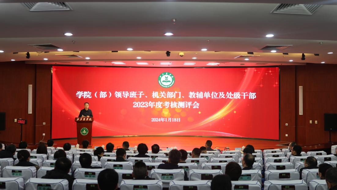1月18日,学校召开2023年度学院(部)领导班子、机关部门、教辅单位及处级干部2023年度考核测评会。33个二级单位分别就2023年度工作进行述职汇报,总结成绩、查找短板,谋划新一年工作思路。全体校领导出席会议。