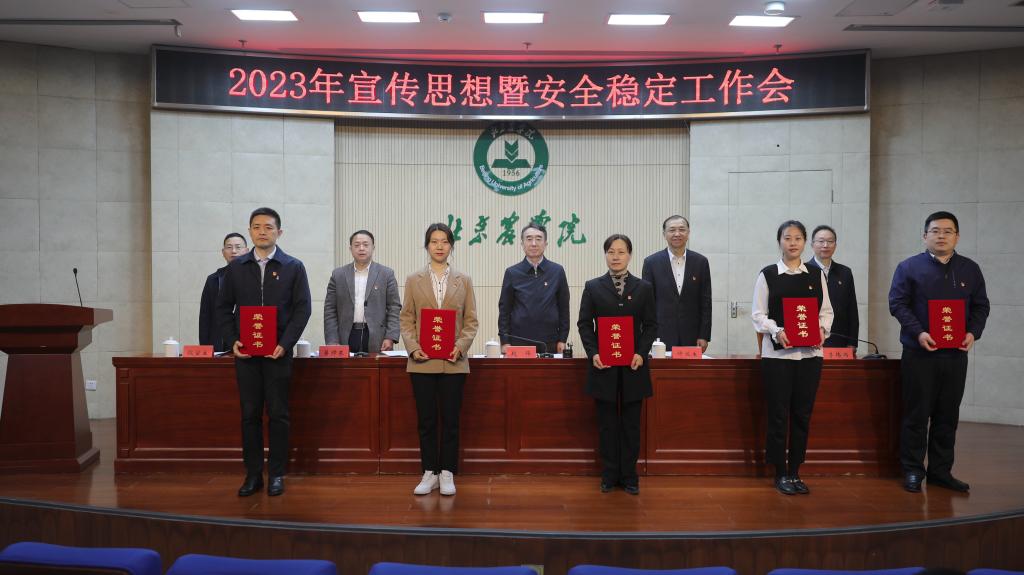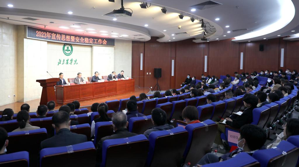 赵锋强调,今年是全面贯彻落实党的二十大精神的开局之年,也是学校深化作风建设、推动高质量发展的重要之年。做好宣传思想和安全稳定工作至关重要、极为重要。我们要坚持以习近平新时代中国特色社会主义思想凝心铸魂,聚焦新时代首都发展和学校“质量提升年”要求,切实增强做好宣传思想和安全稳定工作的责任感、紧迫感,大力弘扬真抓实干的优良作风,努力打造大宣教、大安稳格局,全面推进宣传思想和安全稳定工作提质增效,为学校事业高质量发展、为加快建设高水平应用型现代农林大学奠定坚实思想基础、营造良好舆论氛围、凝聚强大精神力量、提供有力安全保障。