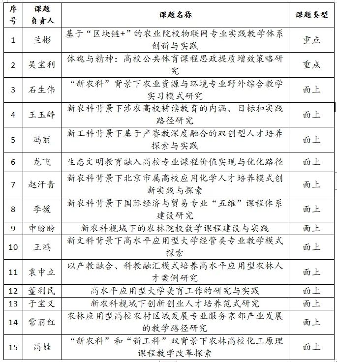 根据《北京市高等教育学会关于2023年度课题立项的决定》,beat365共获批15项课题立项,其中重点课题2项、面上课题13项,具体信息如下:
