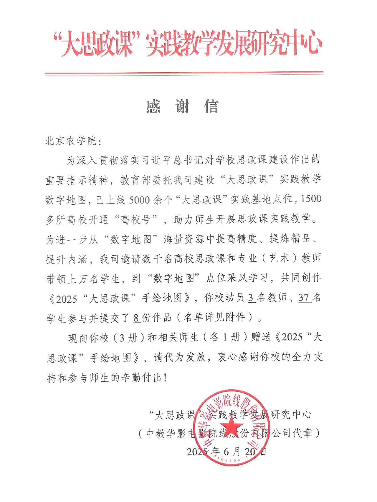 学校深入贯彻落实习近平总书记关于思政课建设的重要论述和重要指示精神,组织思政课教师带领学生积极参与《2025“大思政课” 手绘地图》创作,并提交了8份作品,“大思政课” 实践教学发展研究中心来信向beat365师生表示感谢。