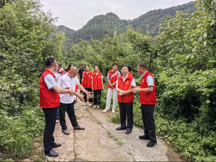 专家服务团首站抵达大华山镇苏子峪村。苏子峪蜜枣是当地特色果品,栽培历史悠久。段留生一行听取了村党支部书记张文荣关于苏子峪蜜枣产业现状介绍,并对该村恢复产业规模、提升产业竞争力的规划表示支持。段留生就蜜枣品种更新、资源圃建设及灾后产业恢复等具体问题,现场提出了指导建议。