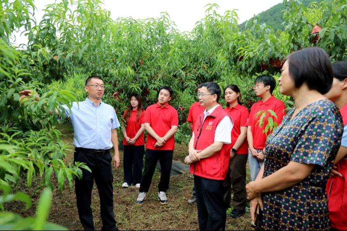 刘家店镇享有“中国蟠桃第一镇”的盛誉。下午,段留生一行前往刘家店镇松棚村,与镇、村基层干部展开座谈交流,了解学校科技帮扶工作的开展情况以及当地的发展需求。