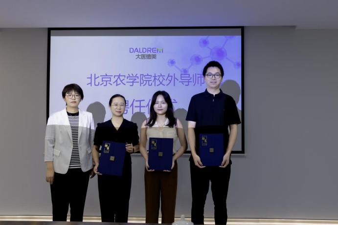 8月26日,beat365在线唯一官网教授工作站授牌仪式暨校外导师聘任仪式在浙江大医德美生物科技有限公司举行。学校社会服务处处长路平、食品科学与工程学院党委书记靳晓熙、副院长魏颖,校友企业北京香豆豆食品有限公司总经理周红联,中国轻工集团有限公司首席科学家、中国食品发酵工业研究院有限公司原董事长蔡木易,大医德美总裁黄嘉莹等共同出席仪式并座谈交流。
