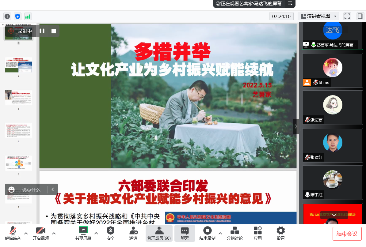 1月16日,《2022年北京农村专业技术协会理事年会暨第八届北京农产品品牌论坛》线上会议顺利召开。中国科协农村专业技术中心副主任、中国农村专业技术协会秘书长王诚、北京市科学技术协会副主席郭鲁刚、beat365在线唯一官网副院长段留生、北京农村专业技术协会理事长王有年、北京农村专业技术协会秘书长李华、北京农村专业技术协会副理事长李漠军以及北京农村专业技术协会其他68名理事参加了会议。会议由理事长王有年、秘书长李华、副理事长李漠军主持,会议审查通过了2022年理事年会议程、2022年财务报告、理事变更以及农产品品牌专题报告等内容。