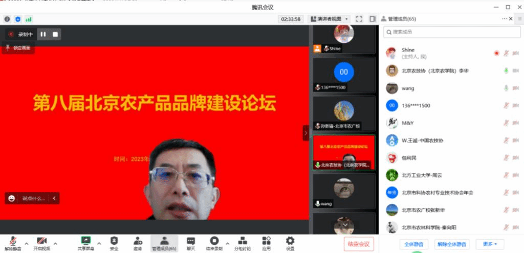 农产品品牌专题报告分别为中国农科院蔬菜花卉研究所研究员徐东辉——我国农产品地理标志登记保护情况及品牌提升、北方交通大学经管学院周云教授——品牌评价技术现状、北京市数字农业农村促进中心农艺师马越——“北京优农”品牌发展建设情况、沃德股份战略品牌部部长张迎寒——信息化时代农业品牌建设实践、中国科学院遗传与发育生物学研究所高级工程师陈宇红——“益生微生物改善家禽养殖,提升品牌现象”、艺薯家餐饮投资有限公司总裁马达飞--文化产业赋能乡村振兴的马铃薯实践、师屯镇养蜂协会理事长正高级农艺师王东生——打造休闲农业五星级园区和“京纯”品牌、顺义农机联合会理事长陈领——天力农业产业园品牌建设经验。