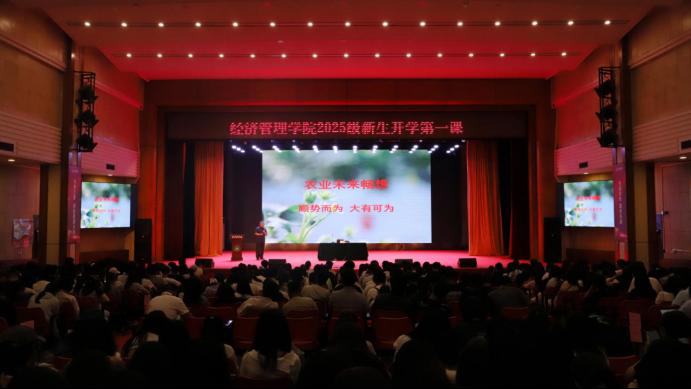 9月6日,经济管理学院2025级新生开学第一课在学校大礼堂举行。学院特邀1985级农林经济管理专业校友、现任北京市农业农村局二级巡视员任荣返校,以《北京三农观察与思考》为题作专题报告,帮助新生深化对“三农”领域的认知,明确专业发展方向,为未来投身乡村振兴事业筑牢思想根基。