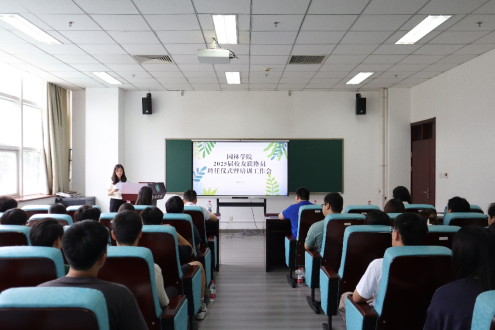6月19日下午,园林学院在园林楼101会议室举行2025届毕业生校友工作联络员聘任仪式暨工作培训会。学校社会服务处副处长陈勇,园林学院党委书记李金苹,园林学院党委副书记、副院长张思明,学校社会服务处赵瑞一老师以及2025届毕业生校友工作联络员参加会议。会议由园林学院辅导员张烨桐主持。